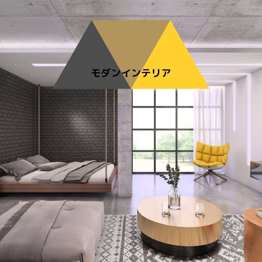ベースカラーは壁やベッドのグレー、アソートカラーにはテーブルのブラウン、アクセントカラーはおしゃれチェアのイエローです。